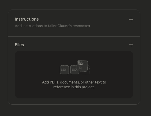 To add project instructions, click on the "+" button in the ‘Instructions’ section on the right hand side of your screen and paste in the prompt.